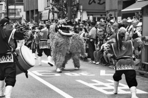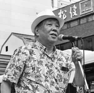 エイサーパレード スタートを前に小倉会長は「今や、初詣や三社祭と並んで浅草の人出の多い催事となった。今日は熱中症に気を付けて頂き、安心・安全・親切の三本建ての商店街で食事や買い物を楽しんで・・・」と挨拶した後、来賓代表の服部区長の祝辞、来賓紹介に続き、全員で横断幕を手に「エイ・エイ・エイサー!」の掛け声でセレモニーを行い、真夏の太陽が照り付ける下、パレードがスタート