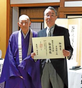 手塚雄二東京藝大名誉教授・日本画家により、龍の眼に仕上げの筆入れ「点睛」を施し、絵を完成させる儀式「画竜点睛」に続いて東叡山寛永寺僧侶による「開眼式」が奉修され、龍に魂を入れ、堂内守護の象徴として祀り上げる儀式が厳かな中、執り行われた。