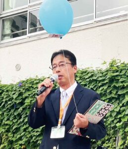 9月10日、創立150周年を迎えた台東区立忍岡小学校(松田正昭校長)では、事前に児童が、「忍岡小学校創立150周年おめでとう」のお祝いコメントや、「忍岡小学校の給食はおいしいよ」という学校の良いところを書いたバルーンに付けるメッセージカードを作成。風向きも良く絶好のコンディションの下、校庭でのセレモニーで松田校長の話に続き、カウントダウンにより、一斉にバルーンが大空に放たれ児童の大きな歓声と笑顔が拡がった。